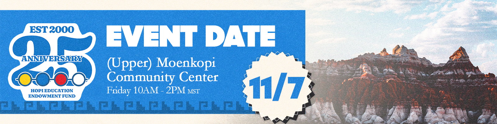 Join us for our 25th Anniversary Celebration Event on Friday, November 7, 10 a.m. to 2 p.m. MST at the Moenkopi (Upper) Village Community Center!